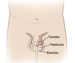 La torsión testicular es el retorcimiento de los testículos y del cordón espermático (estructura que se extiende desde la ingle hasta los testículos y que contiene nervios, conductos y vasos sanguíneos). La torsión provoca una disminución del flujo de sangre hacia los testículos y los estrangula al no permitir la llegada de oxígeno y nutrientes. Este problema ocasiona dolor, y en general se presenta en niños de 10 años o más. Si bien es más frecuente en la adolescencia, también puede presentarse durante el desarrollo fetal o inmediatamente después del nacimiento.